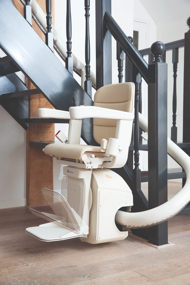 Tuolin osat taittuvat kasaan, joten hissi mahdollistaa helpon kulun portaikossa silloin kun sitä ei käytetä.